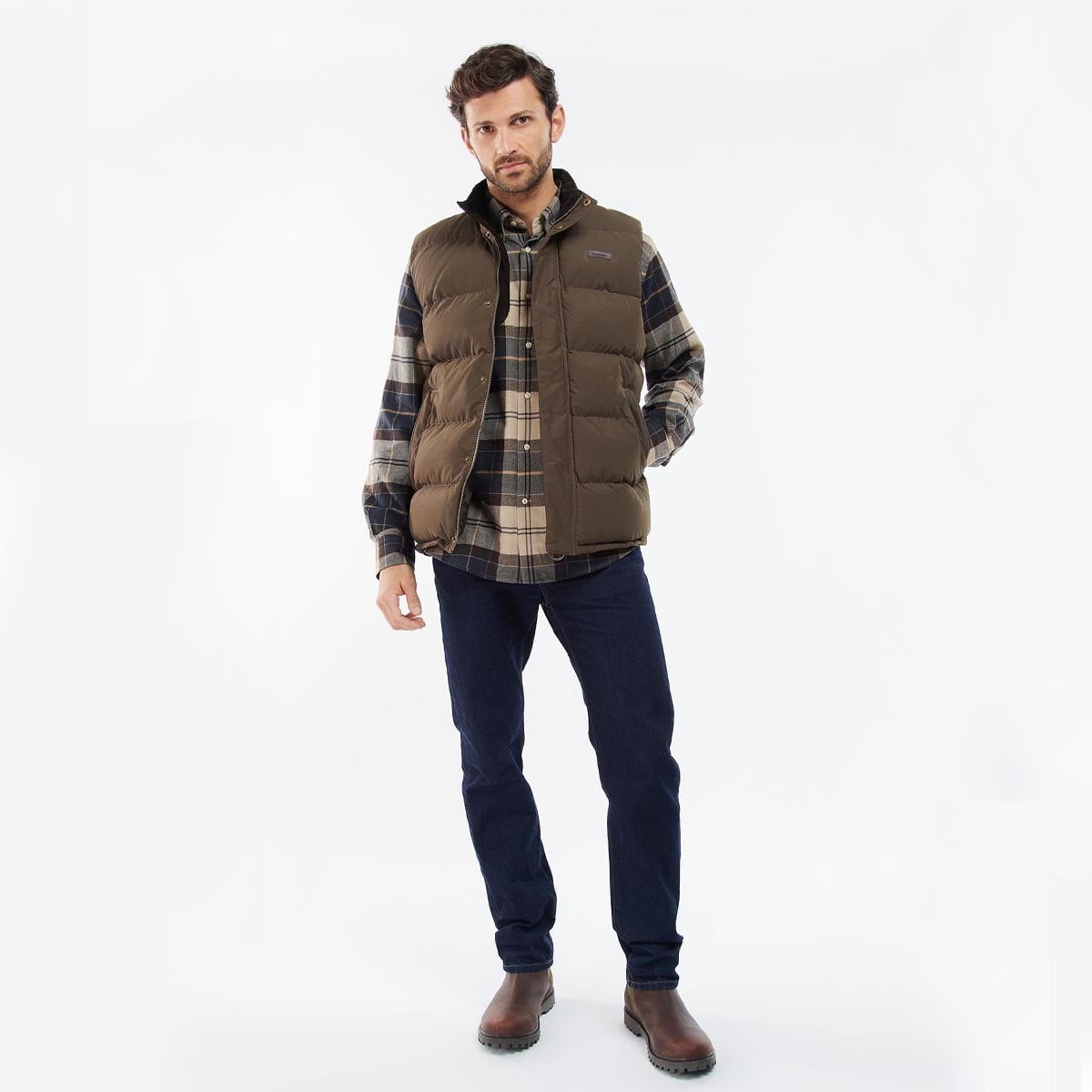 This Gilet boasts an all over baffle quilted design with a stand collar and zip front fastening with a concealed stud placket. Perfect for pairing over a jumper or shirt, this garment features lower welt pockets and cord detail to the inner collar.