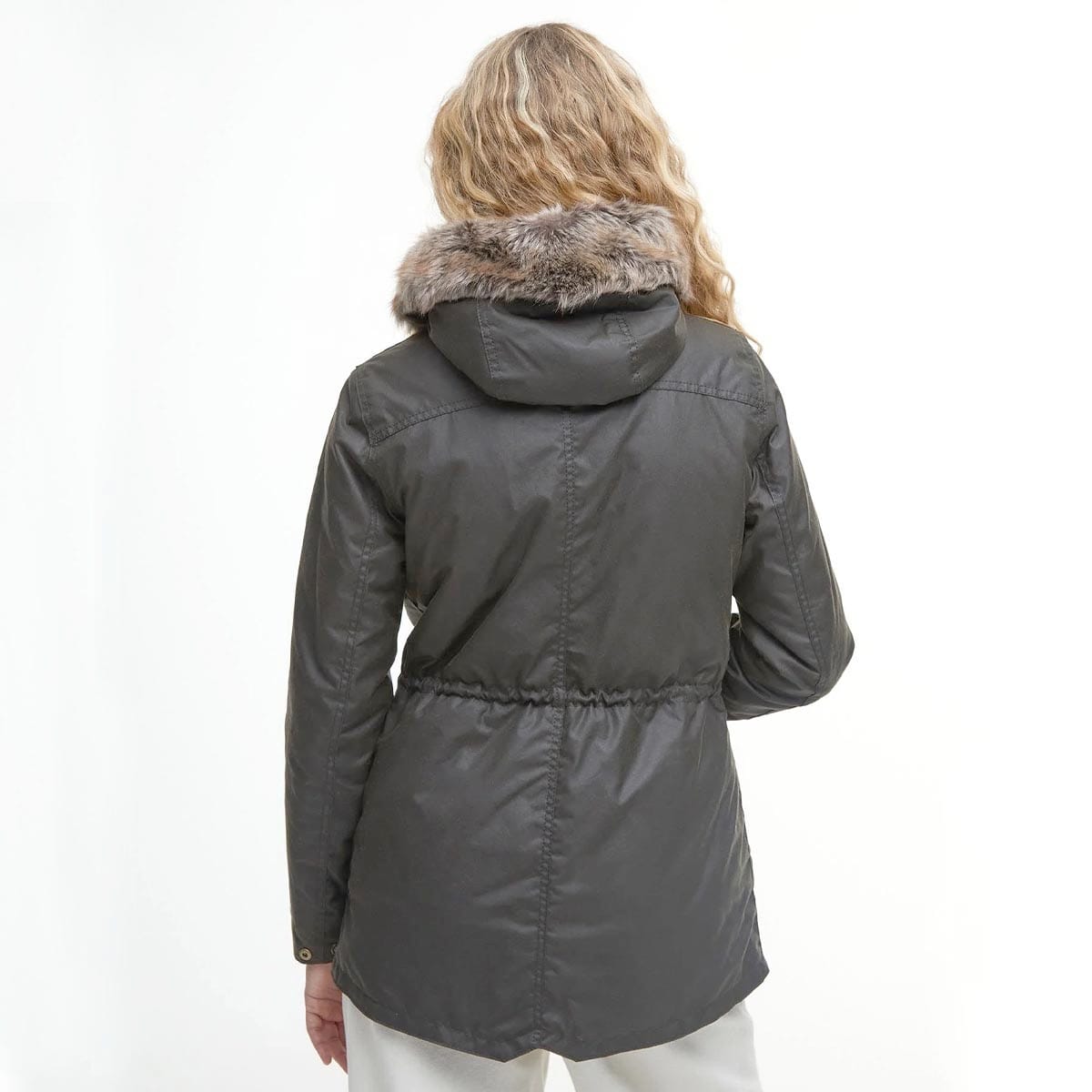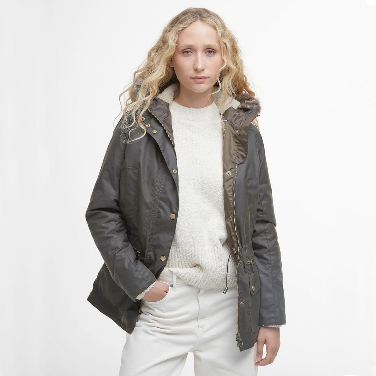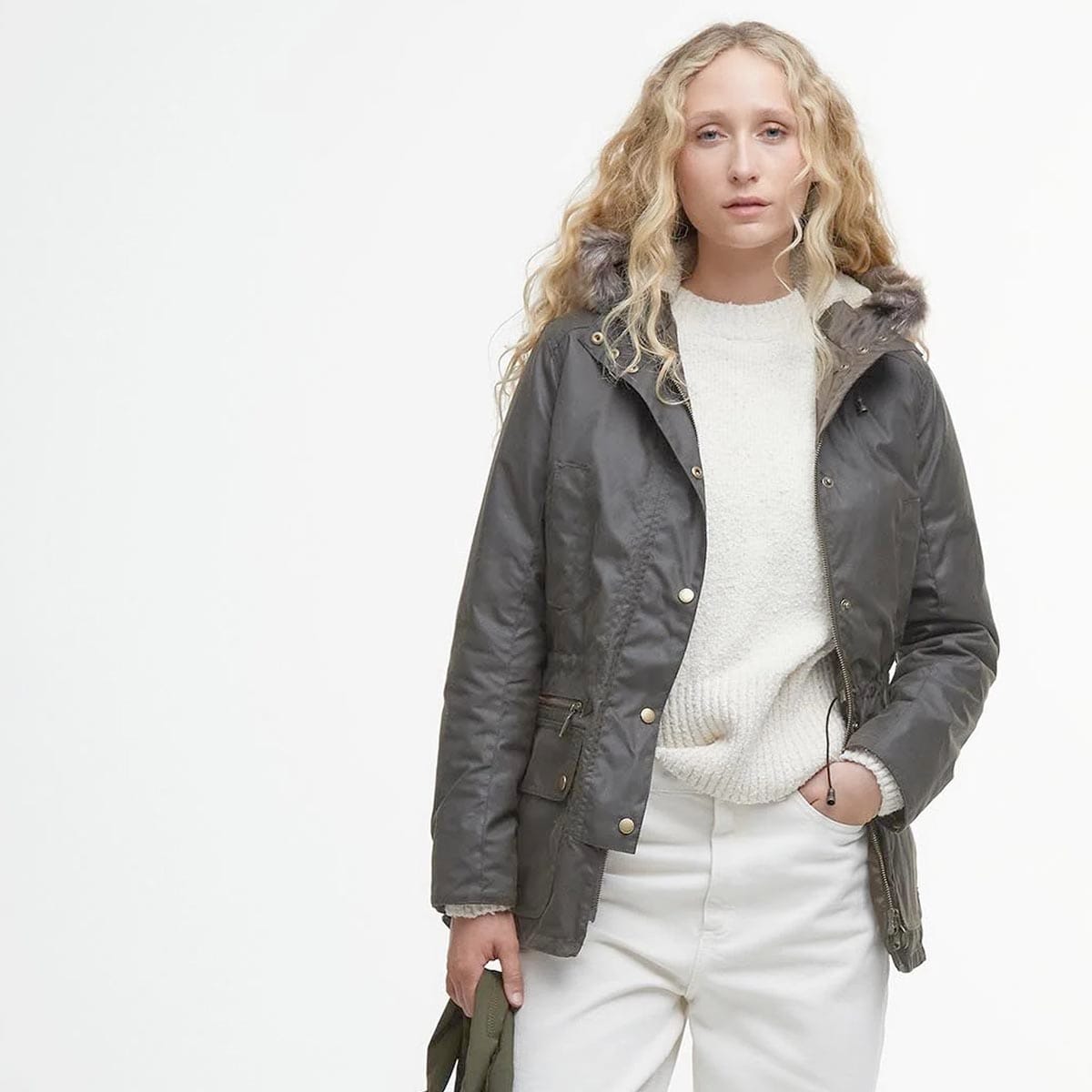 Fishtail style hem at the back and a hood with a faux-fur trim, this parka-style jacket is constructed with a waxed cotton outer and a cotton lining carrying Barbour’s iconic classic tartan. Handwarmer pockets at the chest are a welcome feature on cold days, while lower patch pockets sit beneath exposed zips for a modern look.