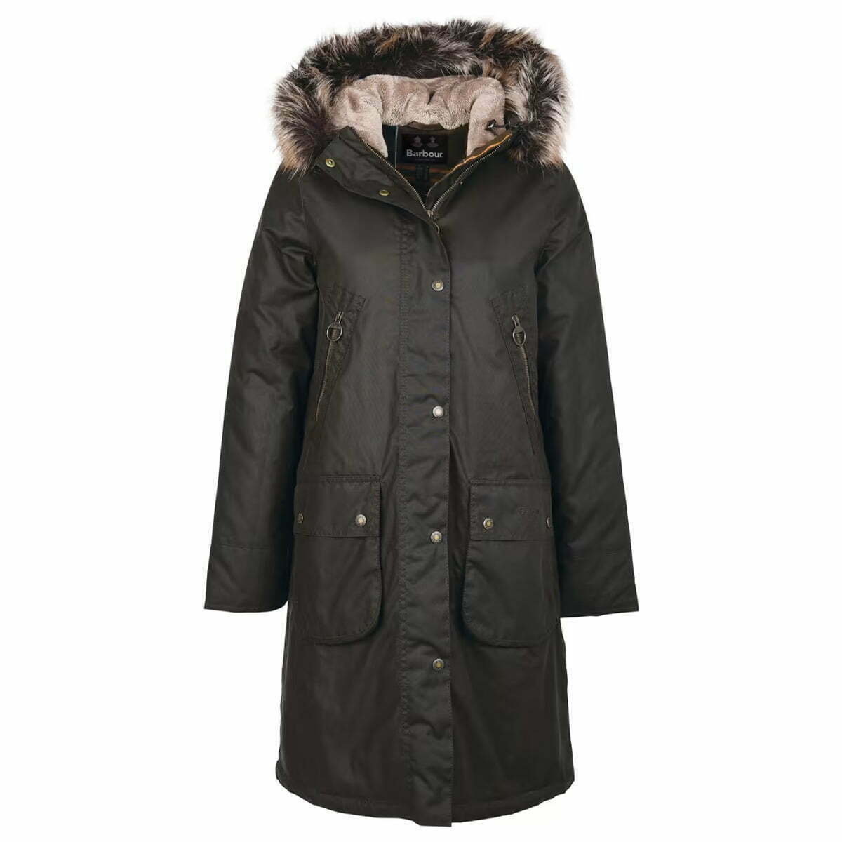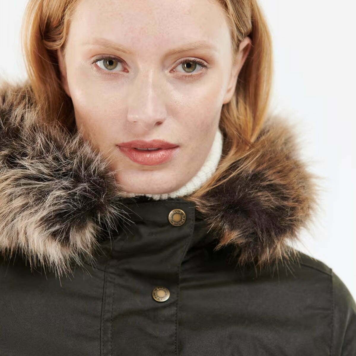 The Barbour Stavia Wax long Jacket or three-quarter length Coat boasts a timeless design, crafted from a waxed cotton design in a longer length for premium comfort and warmth. Showcasing a faux fur trim to the hood, this jacket exudes an authentic country feel while retaining contemporary style. This style is lined in a Barbour signature tartan to the inner body and a sherpa lining to the inner hood.