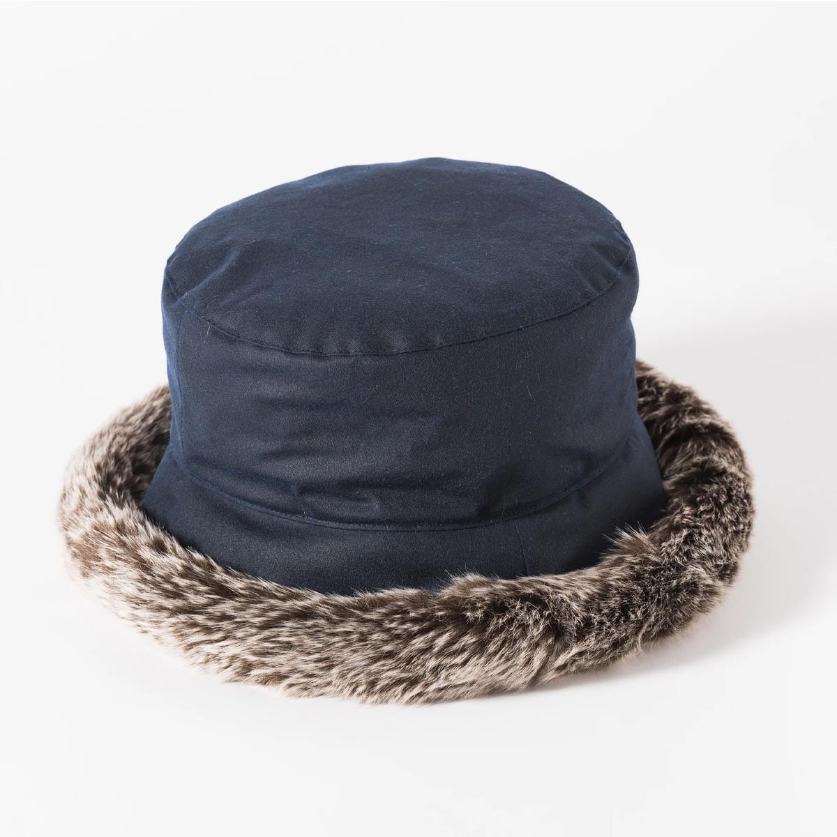 Featuring a soft faux-fur underbrim, fleece lining and inner sweatband, this versatile hat is made from water-resistant wax cotton fabric by Halley Stevenson.