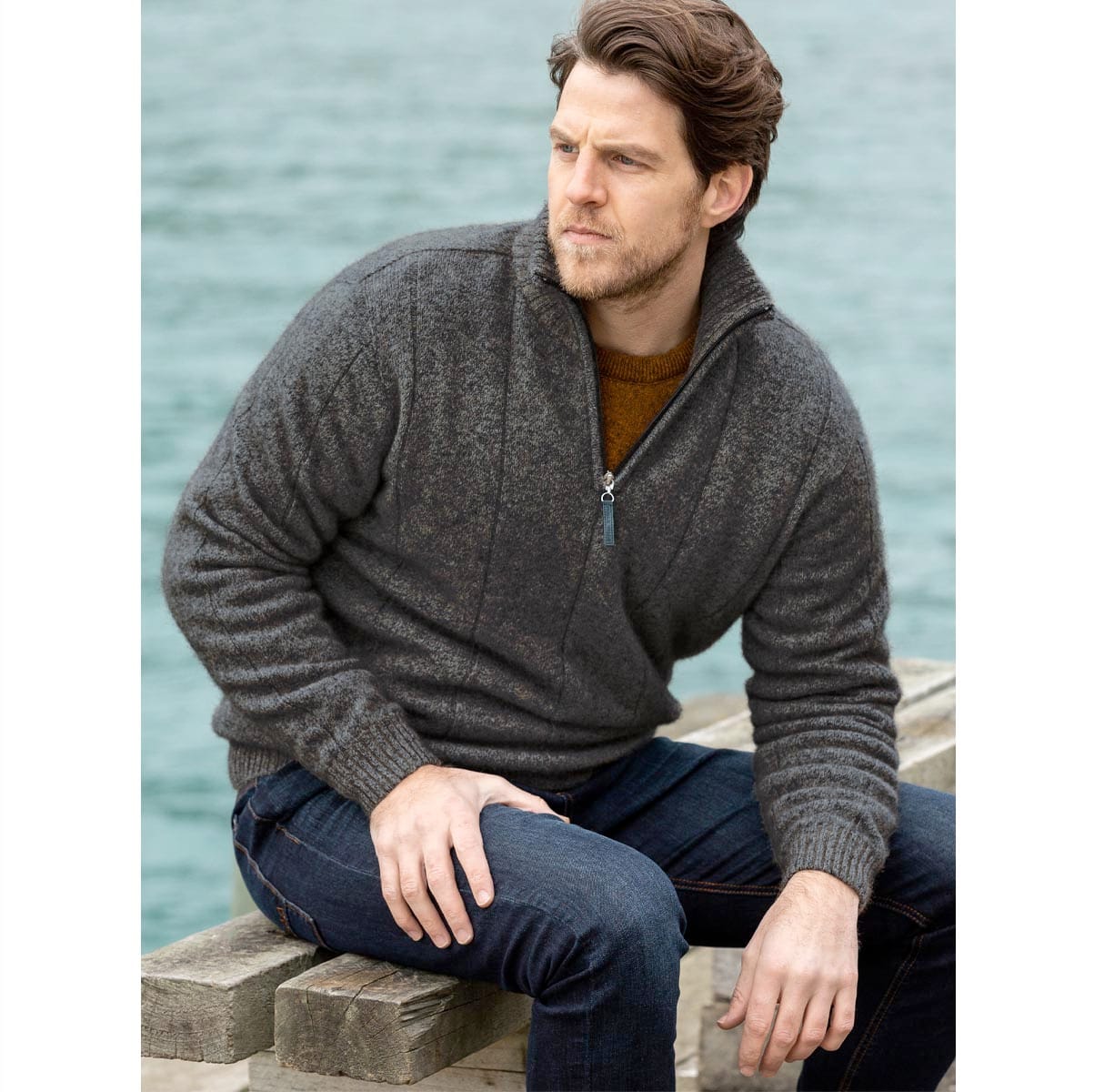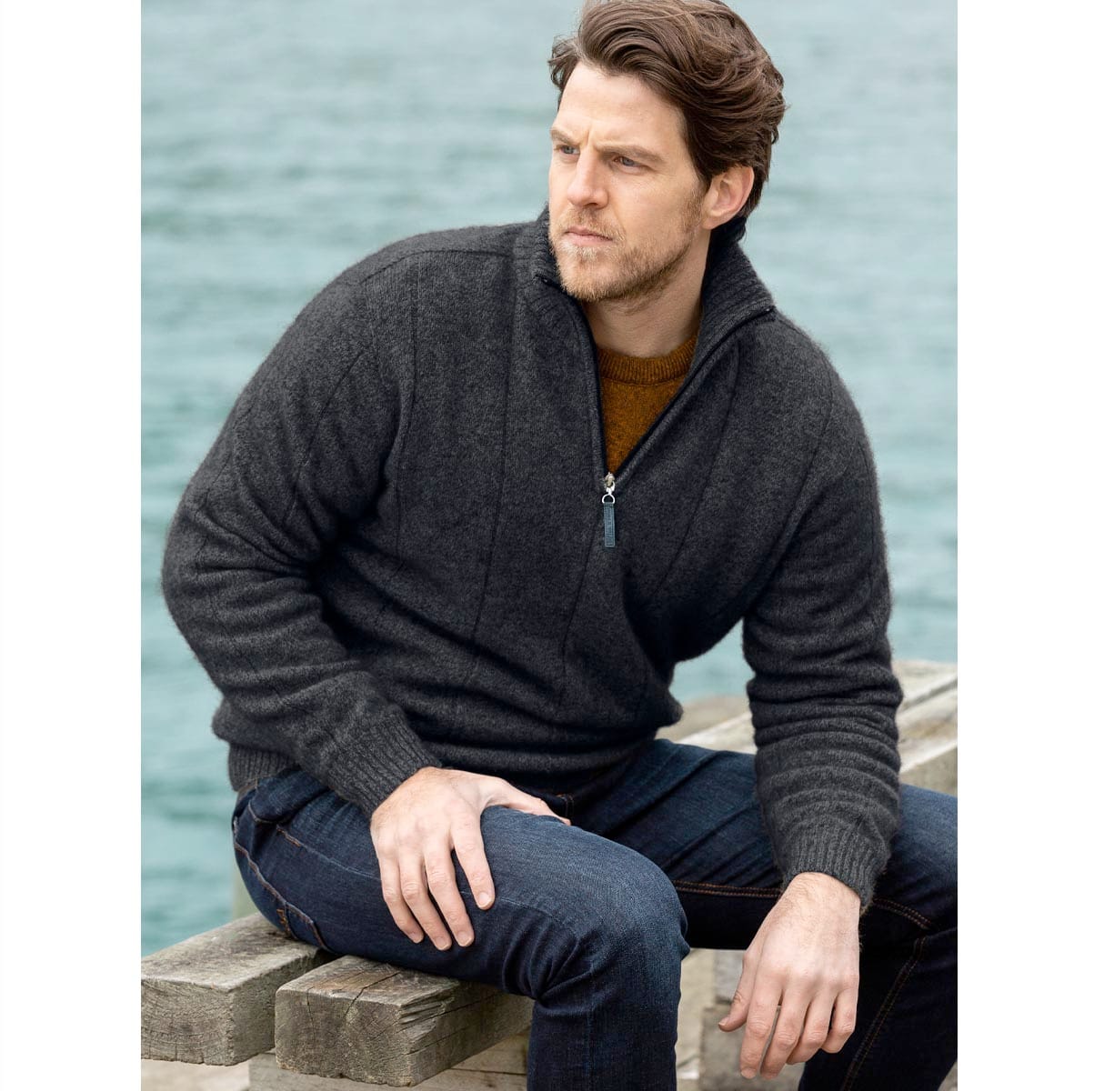 This sweater features an attractive vertical stitch pattern and a ¼ zip style. Its smart, turn-down rib collar can be zipped right up for warmth or down for a relaxed, casual look. This timeless design is the ideal winter wardrobe piece which combines effortless style and superb insulation.