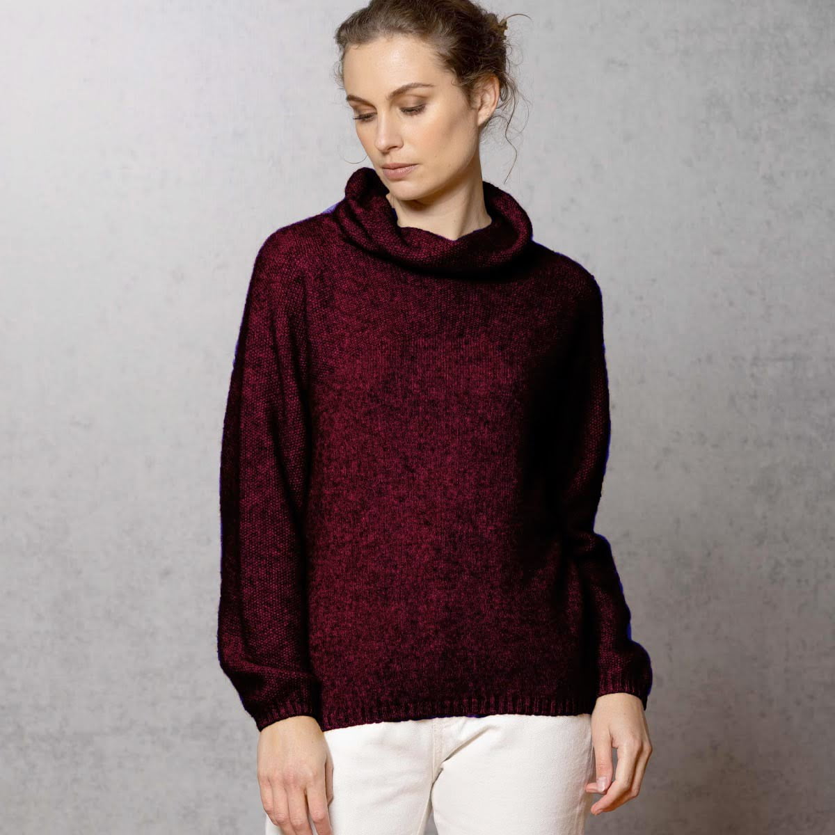 A relaxed fit jumper knitted with a loose cowl neck and moss stitch detail across front & shoulders providing a stylish subtle detail variation. This Possum-Merino blend top will offer unrivalled warmth.