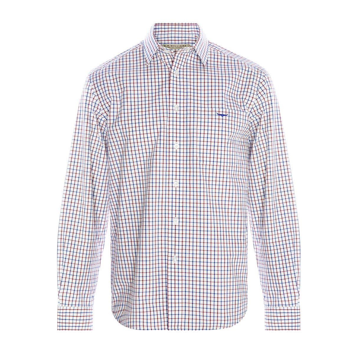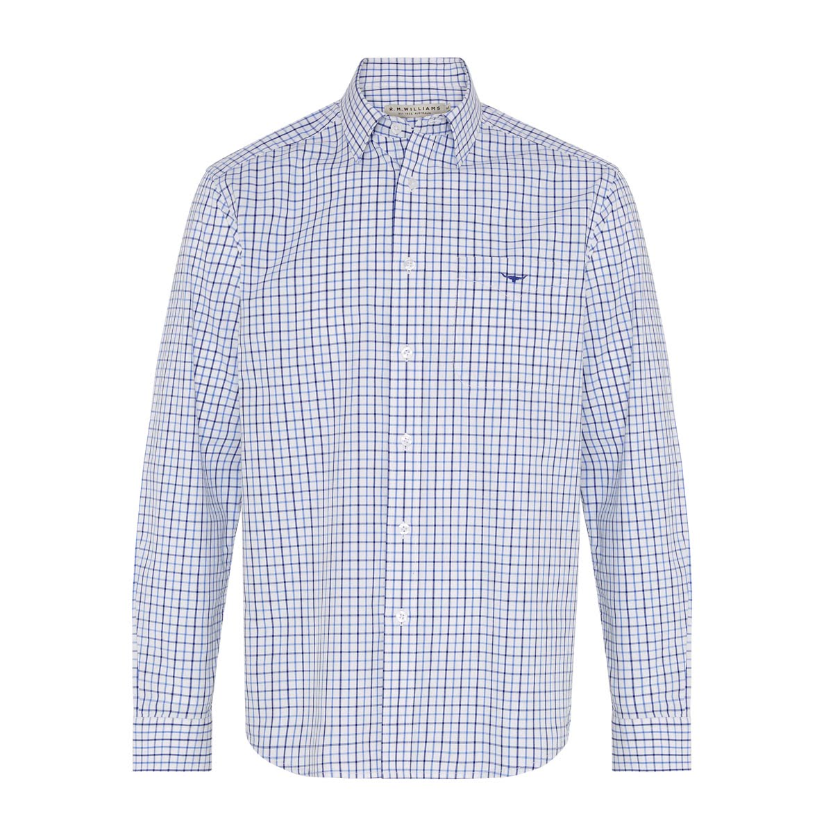 Constructed in lightweight poplin cotton- the Collins Shirt is a classic regular fit- long sleeve shirt- featuring point collar- Longhorn embroidery on the chest pocket- RMW logo buttons- adjustable cuffs and side back tucks along yoke for added movement through the shoulder.