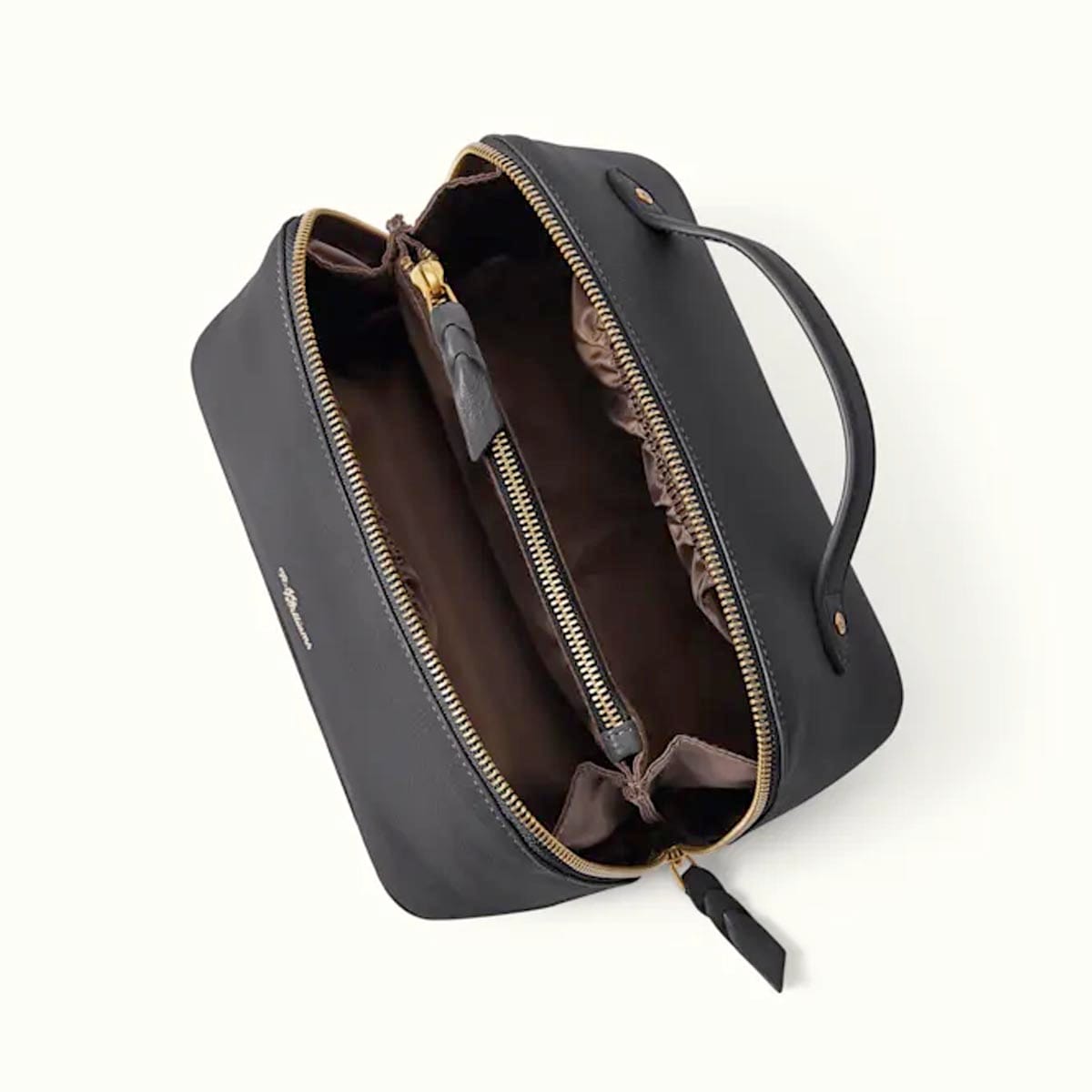 An elegant, functional addition to your travel kit, crafted from premium fine grain leather and designed with separate compartments to keep your beauty essentials organised on the go.