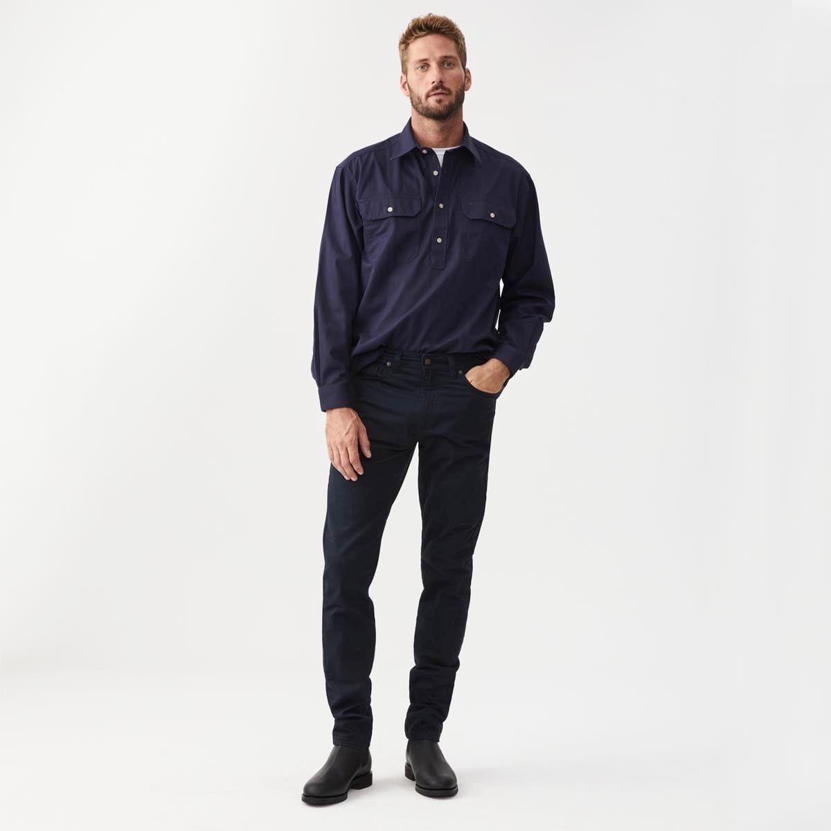 These versatile jeans are a wardrobe essential, ideal for year-round wear. Pair them with t-shirts, shirts or jumpers and a pair of R M Williams Comfort Craftsman Chelsea boots. For a different look, the Ramco Drill Jeans offers a straight-leg design.
