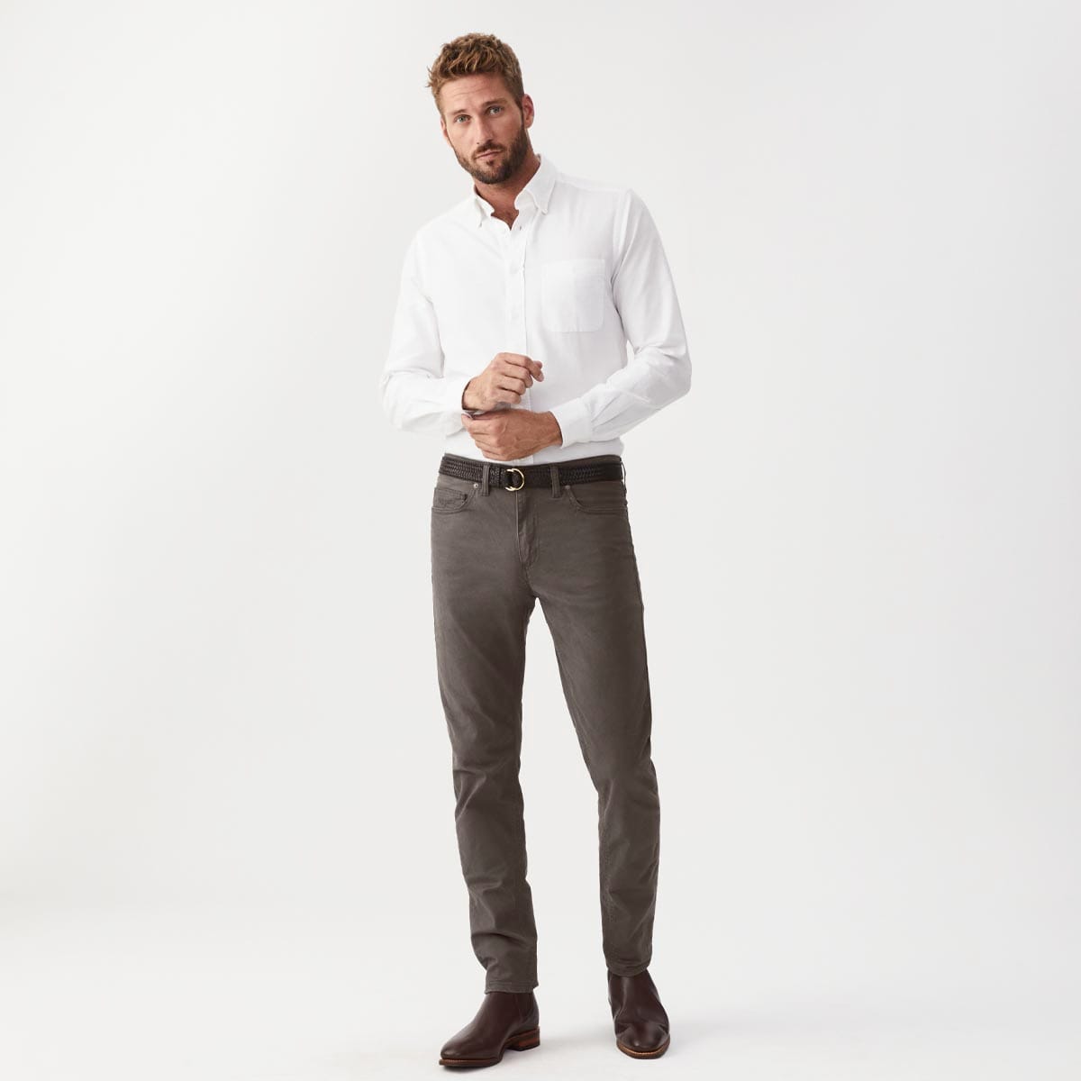 Combining comfort, style and durability, these jeans are resilient yet also soft, breathable and superbly comfortable. The tapered-leg style offers a flattering silhouette, while the waistband sits comfortably below the waist for comfort and style. Featuring the same design as the Loxton Denim Jeans, these instead sport solid colours or ‘drill’. Turn up the cuffs for a stylish contrast.