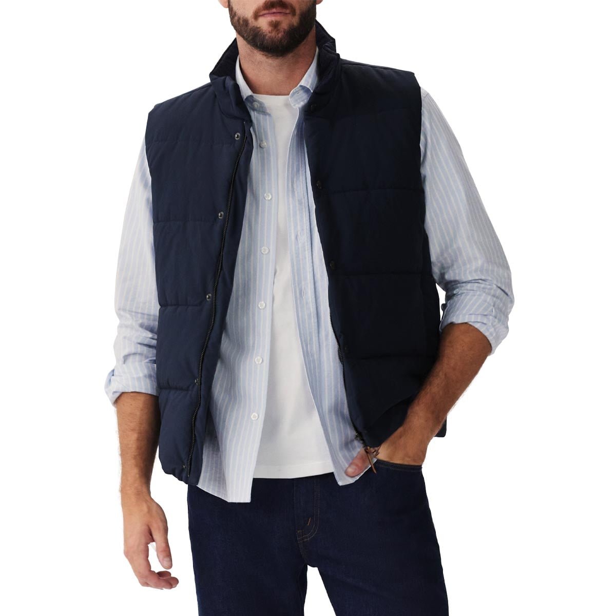 Functional puffer vest for easy layering and lightweight comfort. This style is crafted from recycled nylon with PrimaLoft fill and finished with a suede touch collar and zip-up front.