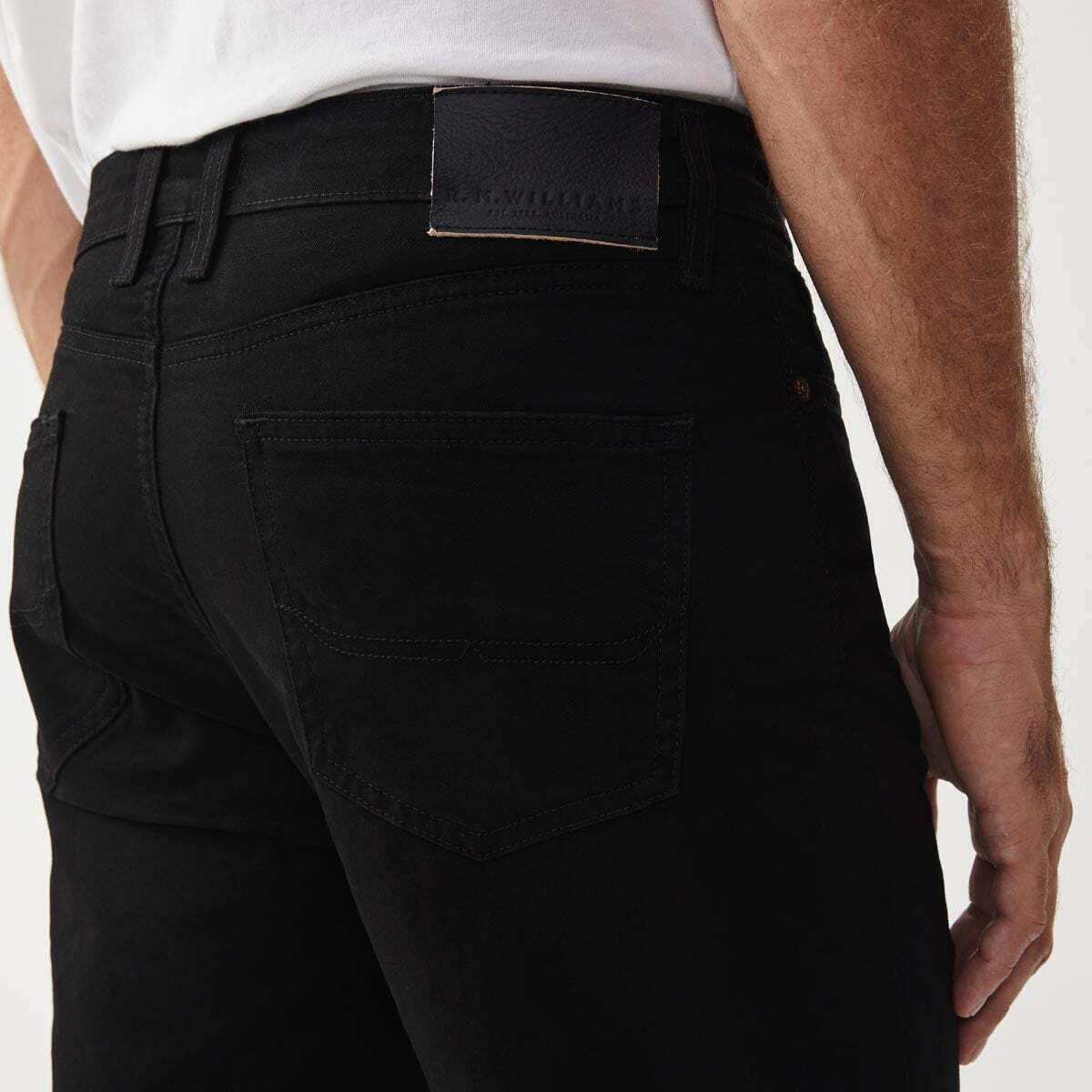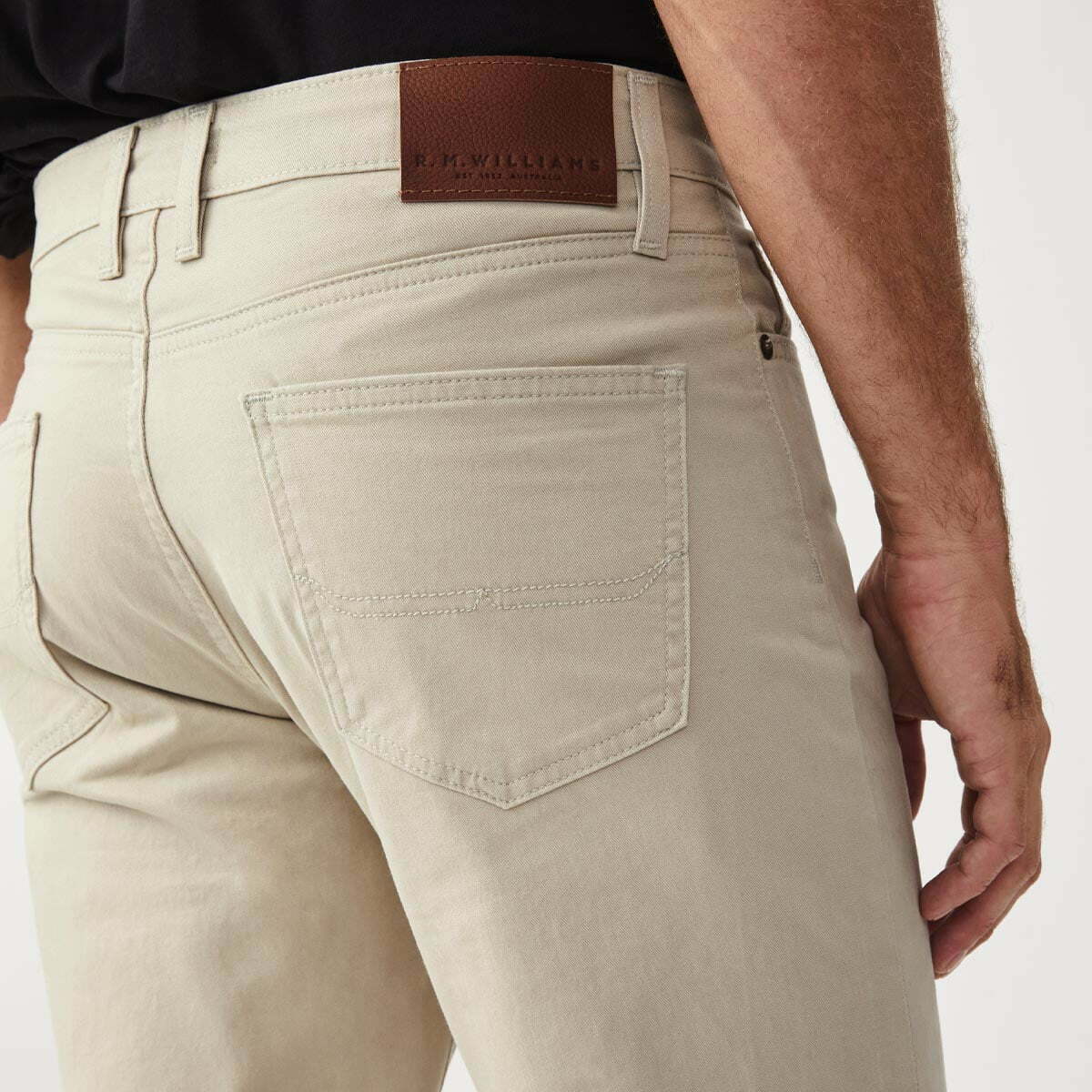 - Zip fly & R.M.Williams branded fob, rivets, button & leather waist patch on back right waist band