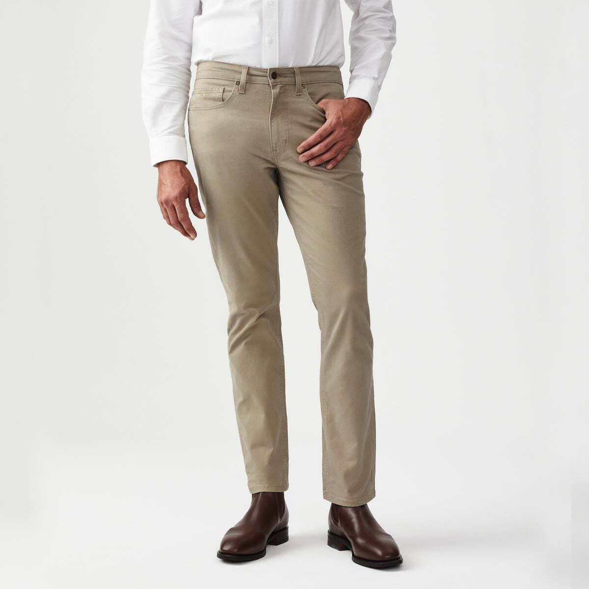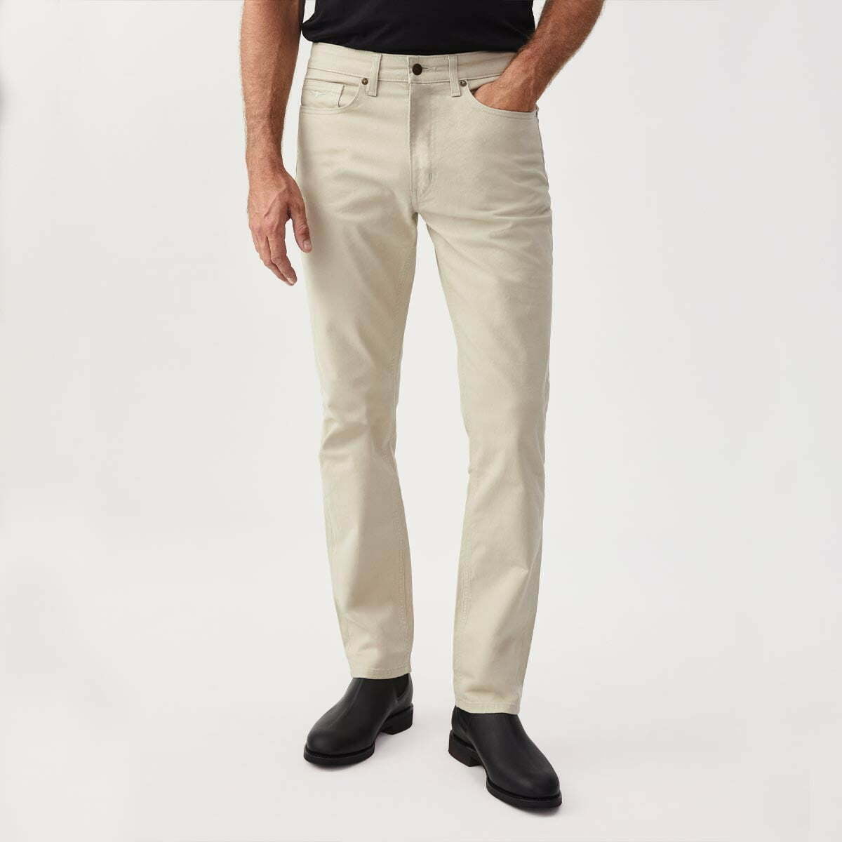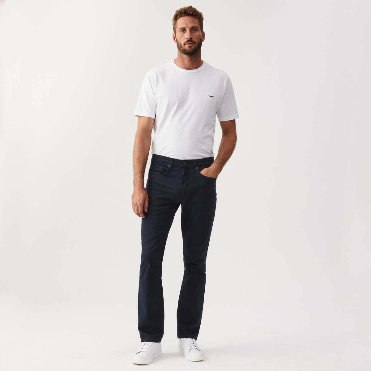 These are jeans but not in denim, instead they are crafted from stretch cotton twill for everyday comfort. They are in solid colours more like chinos but are in a jean cut still, back pockets on the outside and front downward pockets just like the Ramco Denim Jeans.