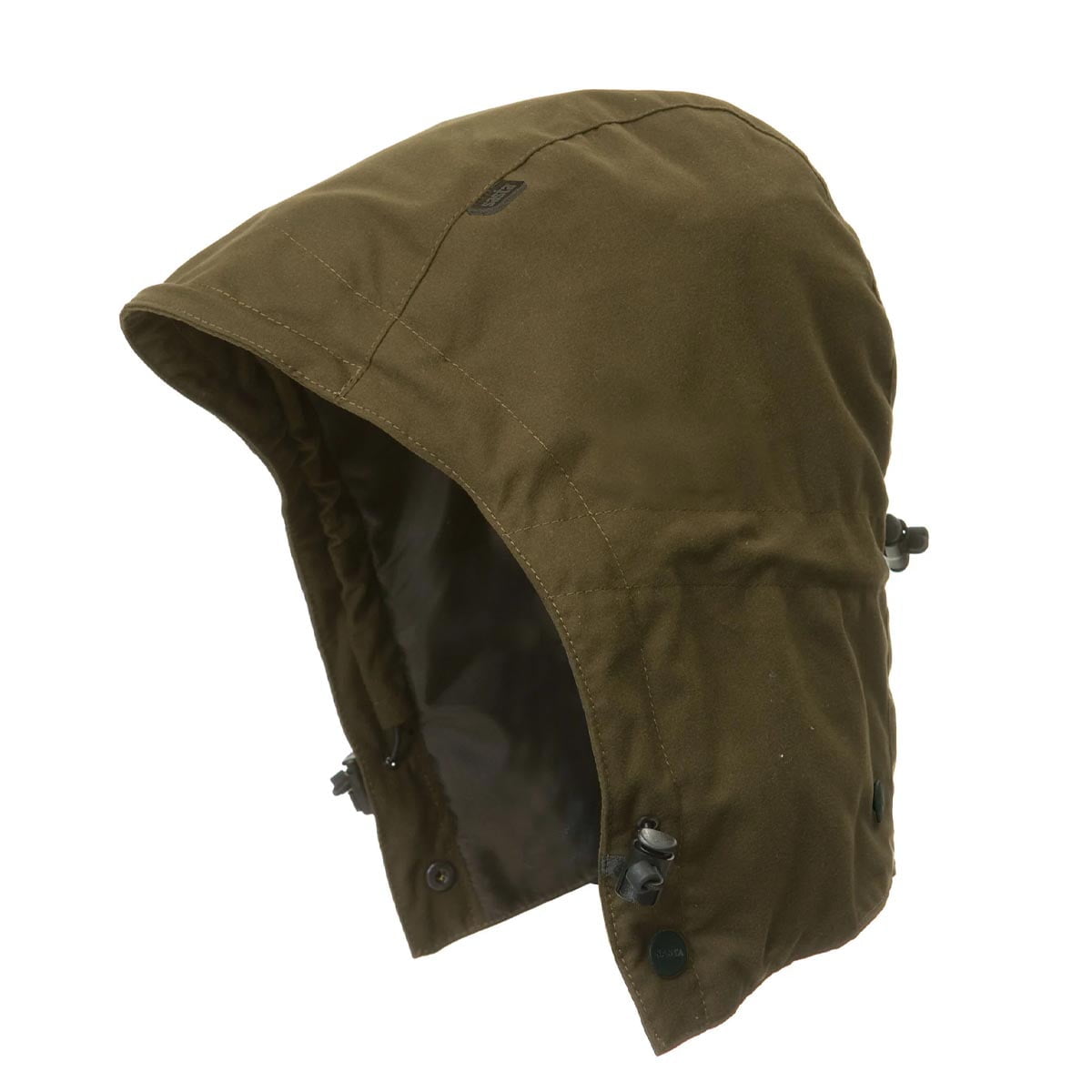 Gore-Tex® lined hood with adjustable stiff peak. Waterproof, windproof and breathable.