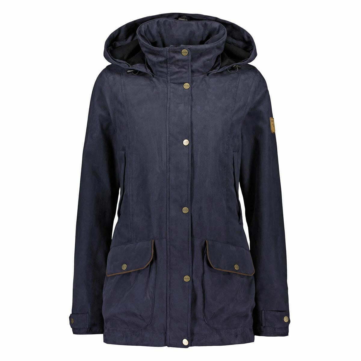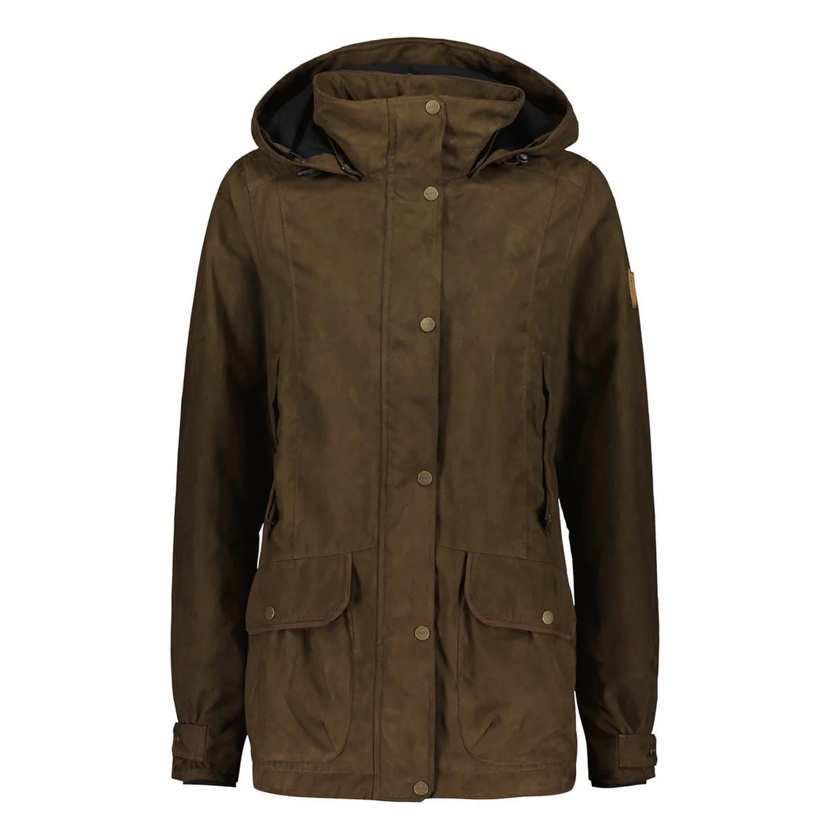 A ladies classic multipurpose country jacket. The feminine cut jacket is a good option for the outdoor, allowing you to enjoy the day in even bad weather. The jacket features hand warming pockets and big cartridge pockets. Flap retainers can be found in the hand warming pockets. The jacket is made of soft polyester suede shell fabric with separate Gore-Tex® Woodland liner.